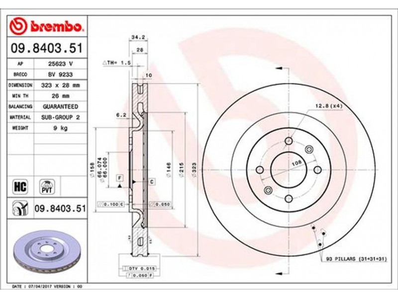 09.8403.51 - ΔΙΣΚ.ΕΜΠ.PSA P208 GTI (323X28) BREMBO 09.8403.51 - Δισκόπλακα