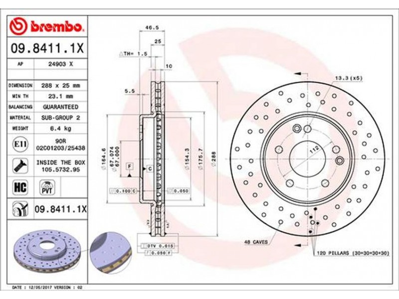09.8411.1X XTRA ΔΙΣΚ/ΚΕΣ EM.MERC.C203/W203 BREMBO 09.8411.1X - Δισκόπλακα