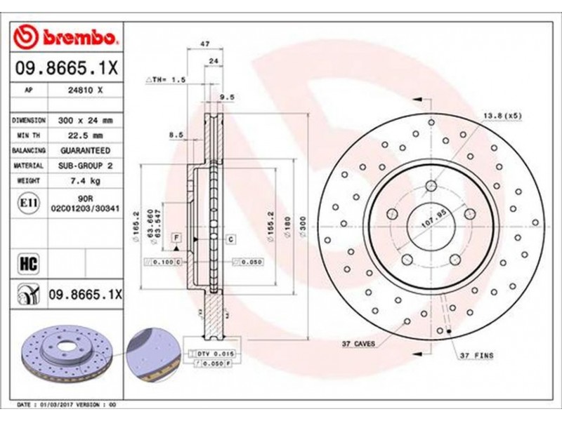 09.8665.1X ΔΙΣΚΟΙ ΕΜΠΡ.X-TRA MONDEO 03-(300MM) BREMBO 09.8665.1X - Δισκόπλακα
