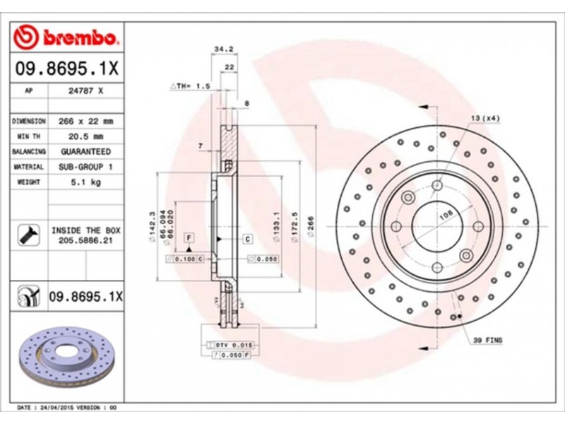09.8695.1X XTRA ΔΙΣΚ/ΚΕΣ ΕΜ P206/307/XSARA/C3 BREMBO 09.8695.1X - Δισκόπλακα
