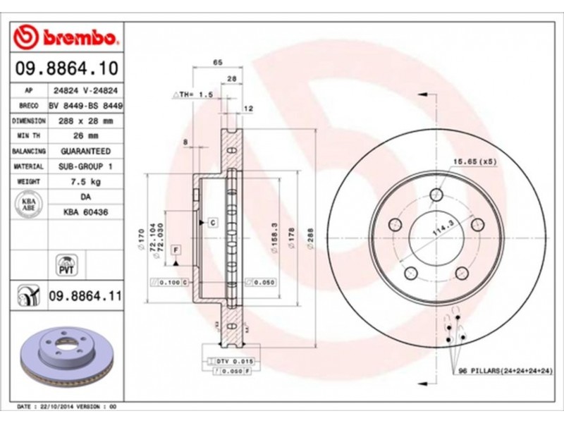 Criteries : Αριθμός οπών 5, Διάμετρος κέντρωσης [mm] 72, Ελάχιστο πάχος [mm] 26, Εξωτερική διάμετρος [mm] 288, Επιφάνεια με επίστρωση, Πάχος δισκόπλακας [mm] 28, Ροπή σύσφιγξης [Nm] 115, Τύπος δισκόφρενων εσωτερικά αεριζόμενο, Υψος [mm] 65
