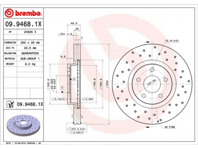 Criteries : Αριθμός οπών 5, Διάμετρος κέντρωσης [mm] 64, Ελάχιστο πάχος [mm] 23,5, Εξωτερική διάμετρος [mm] 300, Επιφάνεια με επίστρωση, Πάχος δισκόπλακας [mm] 25, Ροπή σύσφιγξης [Nm] 100, Τύπος δισκόφρενων διάτρητο/εσωτερικά αεριζόμενο, Υψος [mm] 49