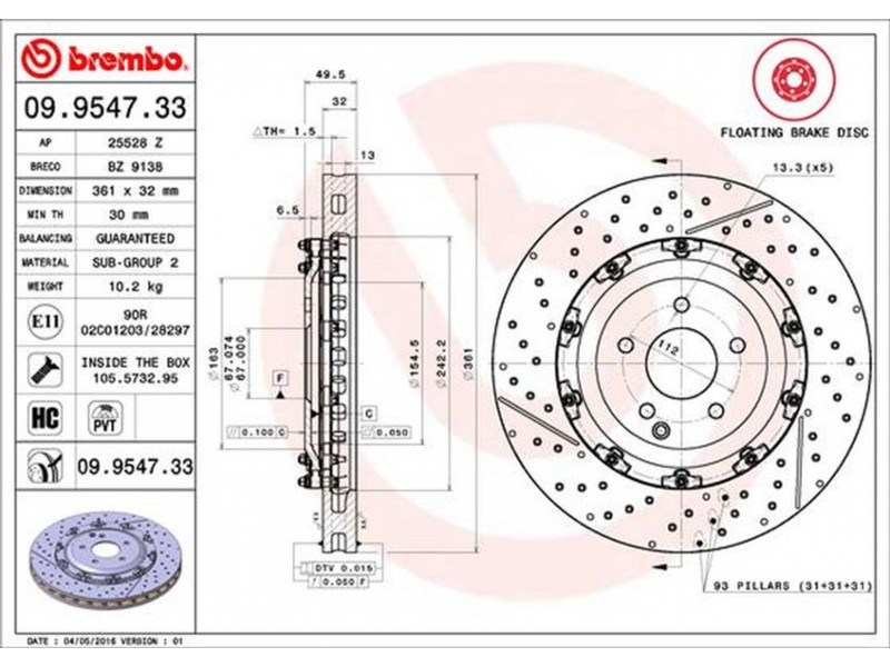 09.9547.33 - ΔΙΣΚ.ΦΡΕΝ.Δ.ΤΡΥΠ.M.B 360X32 (360X32) BREMBO 09.9547.33 - Δισκόπλακα