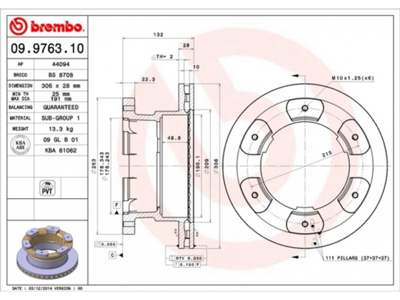 09.9763.10 ΔΙΣΚΟΙ ΟΠΙΣΘ.IVECO IV/V/VI (306MM) BREMBO 09.9763.10 - Δισκόπλακα