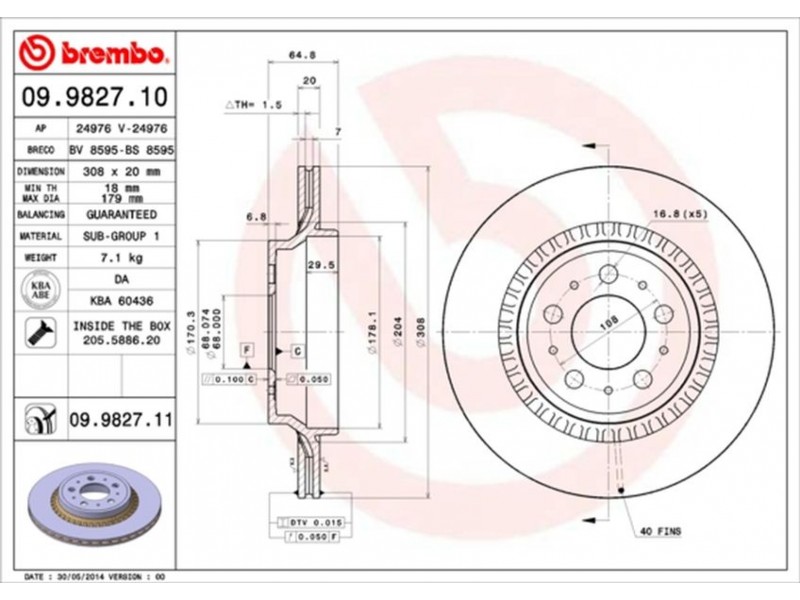 09.9827.11 ΔΙΣΚ/ΚΕΣ VOLVO XC 90 03- BREMBO 09.9827.11 - Δισκόπλακα