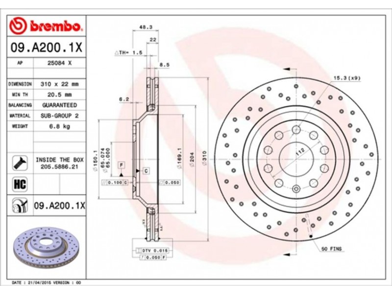 09.A200.1X ΔΙΣΚΟΙ ΟΠΙΣΘ.ΤΡΥΠΗΤ.XTRA S3(8P) (310X22) BREMBO 09.A200.1X - Δισκόπλακα