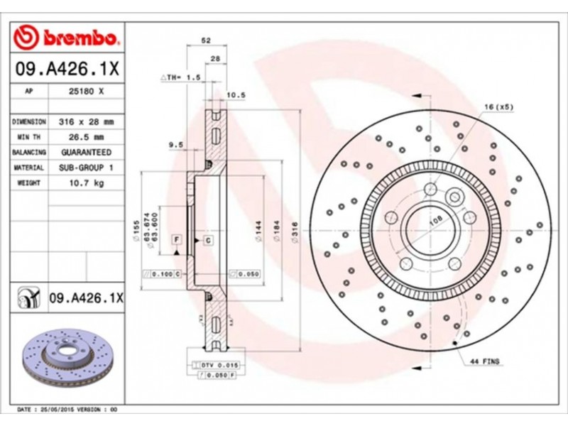 09.A426.1X ΔΙΣΚΟΙ ΕΜΠΡ ΤΡΥΠ. XTRA .S-MAX/FREELANDER/S60 II (316X28) BREMBO 09.A426.1X - Δισκόπλακα