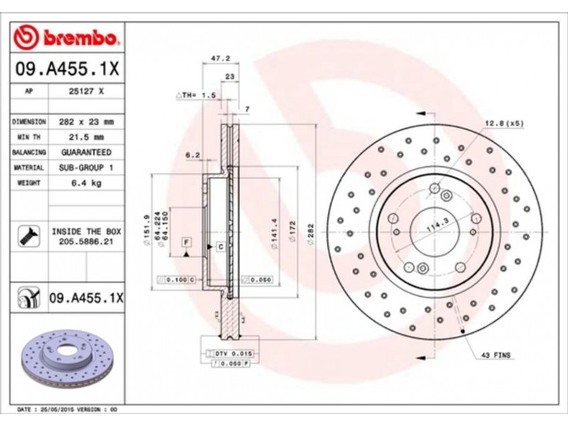 09.A455.1X XTRA ΔΙΣΚ/ΚΕΣ ΕΜ.CIVIC HATC.06- BREMBO 09.A455.1X - Δισκόπλακα