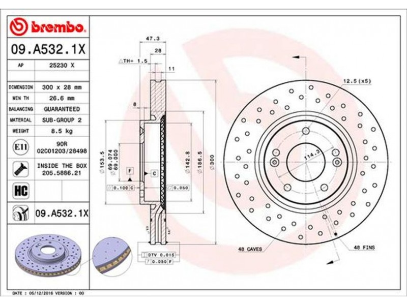 09.A532.1X ΔΙΣΚ.ΕΜΠΡ.ΤΡΥΠ. HUYNDAI IX35/KIA SPORTAGE BREMBO 09.A532.1X - Δισκόπλακα