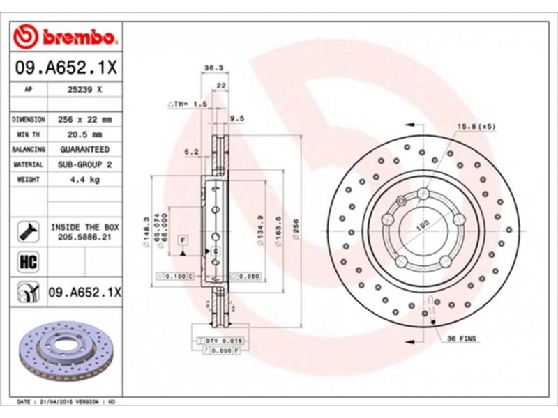 09.A652.1X ΔΙΣΚΟΙ ΟΠΙΣΘ. ΤΡΥΠΗΤ A3-S3 -02 (256X22) BREMBO 09.A652.1X - Δισκόπλακα