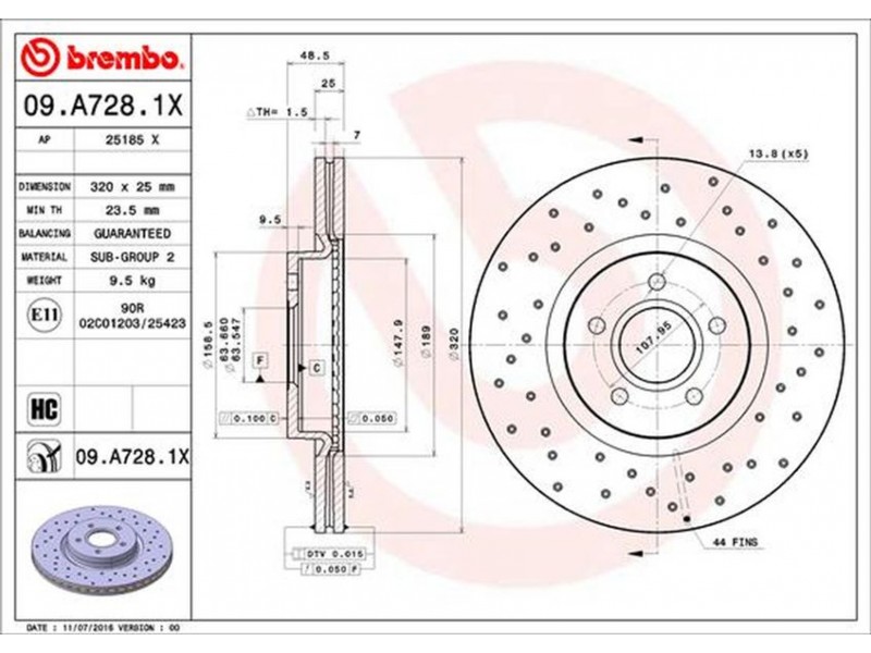 09.A728.1X ΔΙΣΚΟΙ ΕΜΠΡ.XTRA ΤΡΥΠΗΤ FOCUS/V40 (320MM) BREMBO 09.A728.1X - Δισκόπλακα