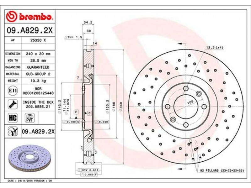09.A829.2X ΔΙΣΚΟΙ ΕΜΠ.ΤΡΥΠ.XTRA DS4/P308 GTI (340MM) BREMBO 09.A829.2X - Δισκόπλακα