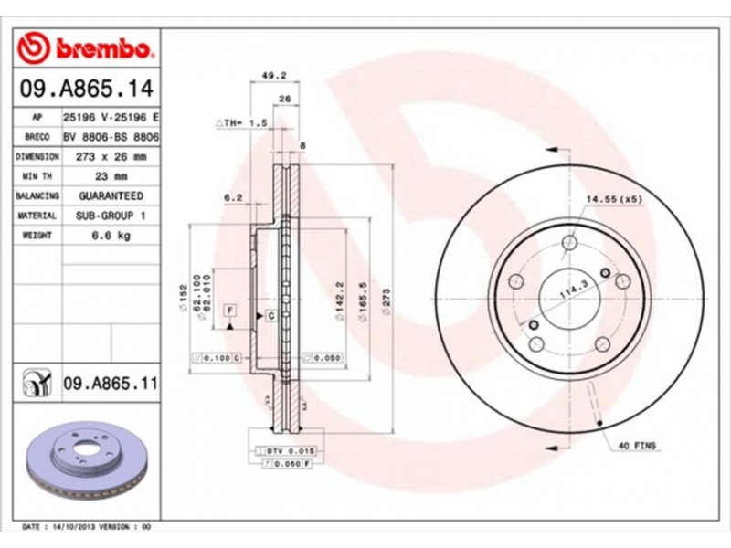 Brembo Δισκόπλακα - 09.A865.11