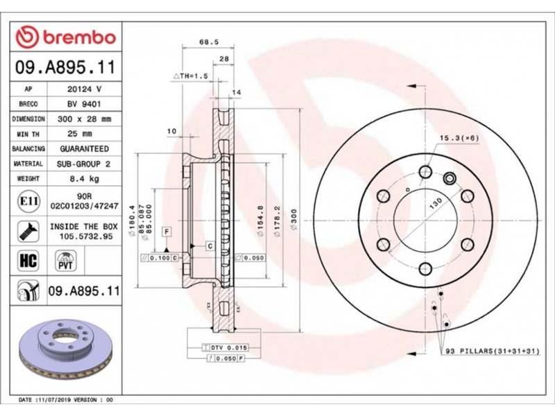 Criteries : Αριθμός οπών 6, Διάμετρος κέντρωσης [mm] 85, Ελάχιστο πάχος [mm] 25, Εξωτερική διάμετρος [mm] 300, Επεξεργασία υψηλής ανθράκωσης, Επιφάνεια με επίστρωση, Πάχος δισκόπλακας [mm] 28, Συμπληρωματικό προϊόν/ πληροφορίες 2 Με βίδες, Τύπος δισκόφρενων εσωτερικά αεριζόμενο, Υψος [mm] 69