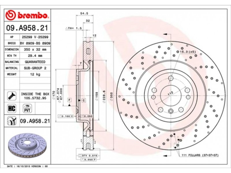 09.A958.21 ΔΙΣΚΟΙ ΕΜΠΡ.ΤΡΥΠΗΤΟΙ MB ML (350MM) BREMBO 09.A958.21 - Δισκόπλακα