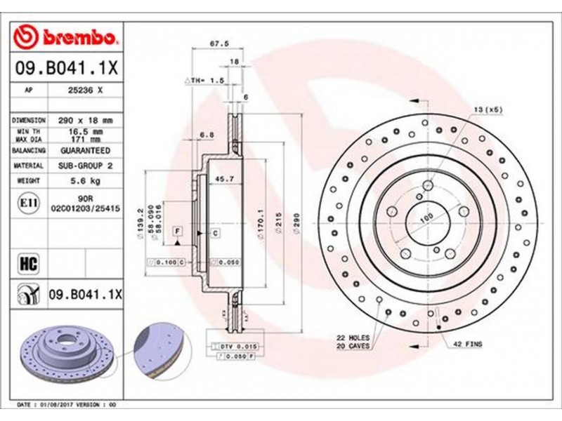 09.B041.1X XTRA ΔΙΣΚ/ΚΕΣ ΟΠΙΣΘ.IMPREZA 2.0T WRX BREMBO 09.B041.1X - Δισκόπλακα