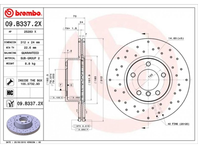 09.B337.2X ΔΙΣΚ/ΚΕΣ ΕΜ.ΤΡΥΠ.BMW F30/E84 BREMBO 09.B337.2X - Δισκόπλακα