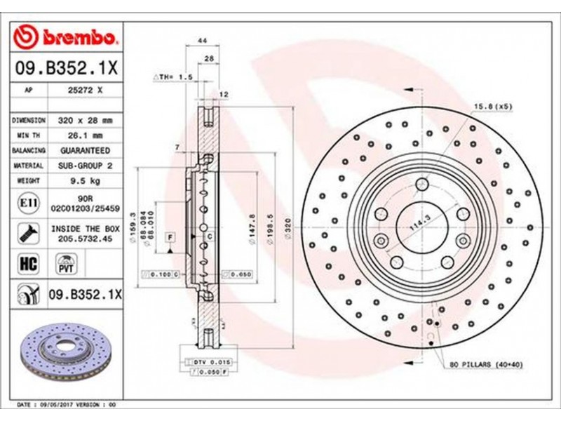 09.B352.1X XTRA ΔΙΣΚ/ΚΕΣ EM. RENAULT LAGUNA/CLIO/MEGANE - 2.0-3.0/1.6RS/1.6-2.0 BREMBO 09.B352.1X - Δισκόπλακα