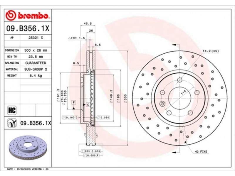 09.B356.1X ΔΙΣΚΟΙ ΕΜΠΡ.ΤΡΥΠ.XTRA OPEL ASTRA J (300MM) BREMBO 09.B356.1X - Δισκόπλακα