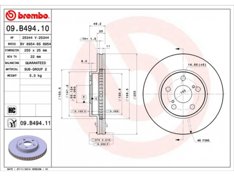 09.B494.11 ΔΙΣΚ/ΚΕΣ ΕΜ.PRIUS 09- BREMBO 09.B494.11 - Δισκόπλακα