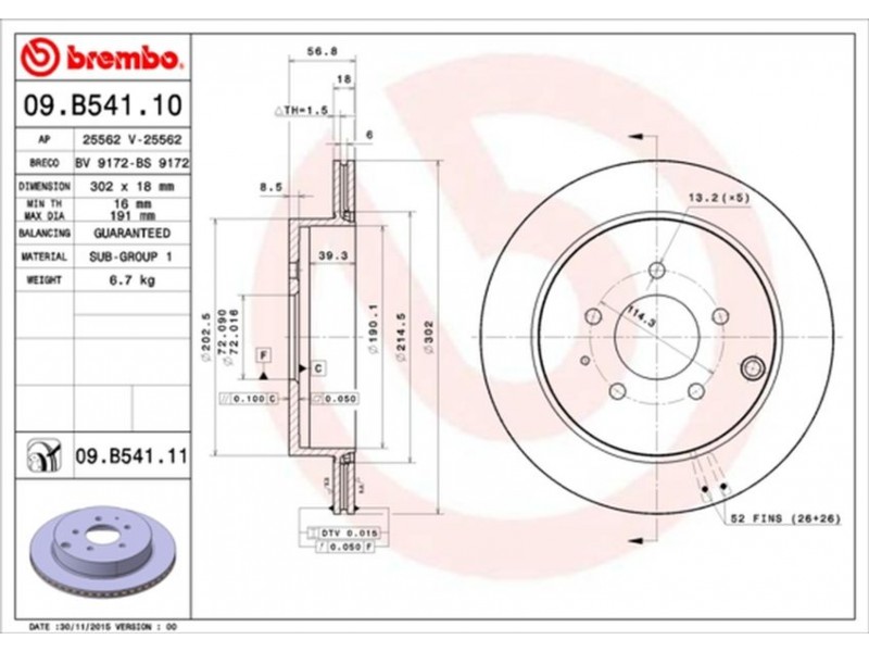 09.B541.11 ΔΙΣΚ/ΚΕΣ ΟΠ. MAZDA CX7 (302MM) BREMBO 09.B541.11 - Δισκόπλακα