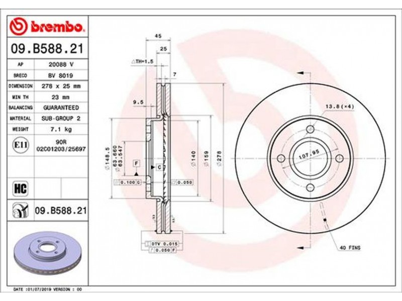 09.B588.21 ΔΙΣΚΟΙ ΕΜΠΡ. FORD FIESTA V 11/01-12/14(278ΜΜ) BREMBO 09.B588.21 - Δισκόπλακα