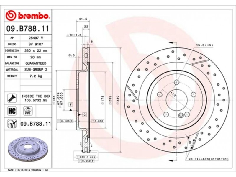 09.B788.11 ΔΙΣΚ/ΚΕΣ ΟΠ.M.B W176 AMG BREMBO 09.B788.11 - Δισκόπλακα