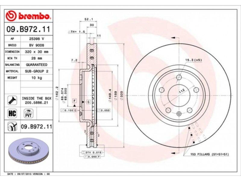 09.B972.11 ΔΙΣΚ ΕΜΠΡ.AUDI A4(B8)/A5/A6/Q3 (320X30) BREMBO 09.B972.11 - Δισκόπλακα