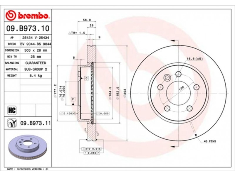 09.B973.11 ΔΙΣΚ/ΚΕΣ ΦΡΕΝ ΕΜ.AMAROK BREMBO 09.B973.11 - Δισκόπλακα