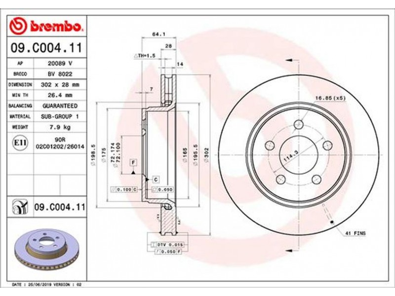 09.C004.11 ΔΙΣΚΟΙ ΕΜΠΡ.DODGE NITRO 06-12 / JEEP CHEROKEE 07- / COMPASS 06-(302MM) BREMBO 09.C004.11 - Δισκόπλακα