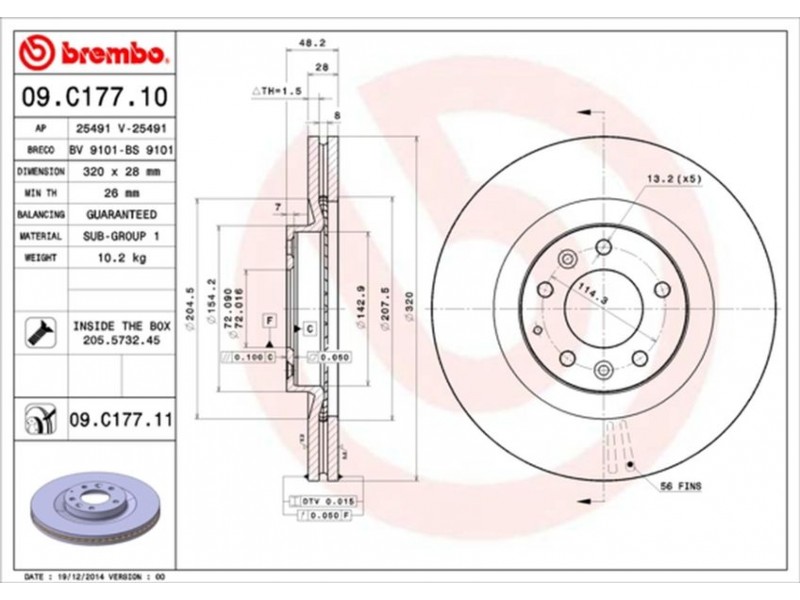 09.C177.11 ΔΙΣΚ/ΚΕΣ ΕΜ.MAZDA CX7 (320MM) BREMBO 09.C177.11 - Δισκόπλακα
