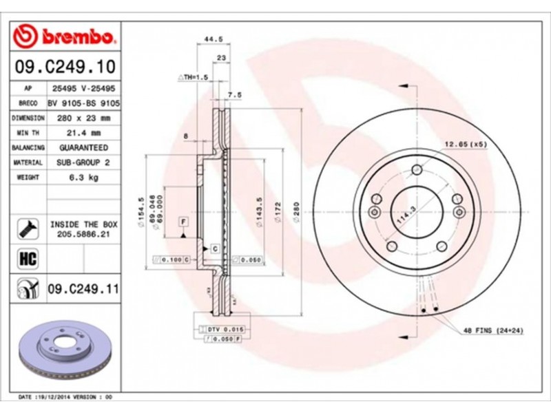 09.C249.11 ΔΙΣΚ/ΚΕΣ ΕΜ.HYUNDAI I30 (GD) (280MM) BREMBO 09.C249.11 - Δισκόπλακα