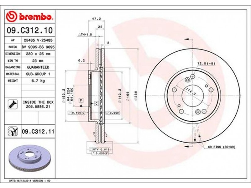 09.C312.11 - ΔΙΣΚΟΙ ΦΡΕΝ.ΕΜ.CIVIC IX (280X25) BREMBO 09.C312.11 - Δισκόπλακα