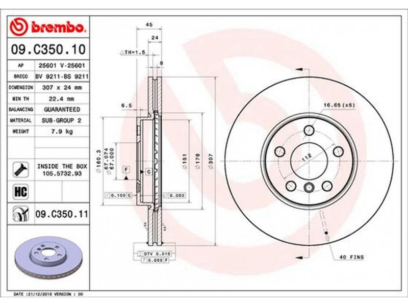 09.C350.11 ΔΙΣΚΟΙ ΕΜΠΡ.BMW 1(F40)/2(F46)/X1(F48) BREMBO 09.C350.11 - Δισκόπλακα