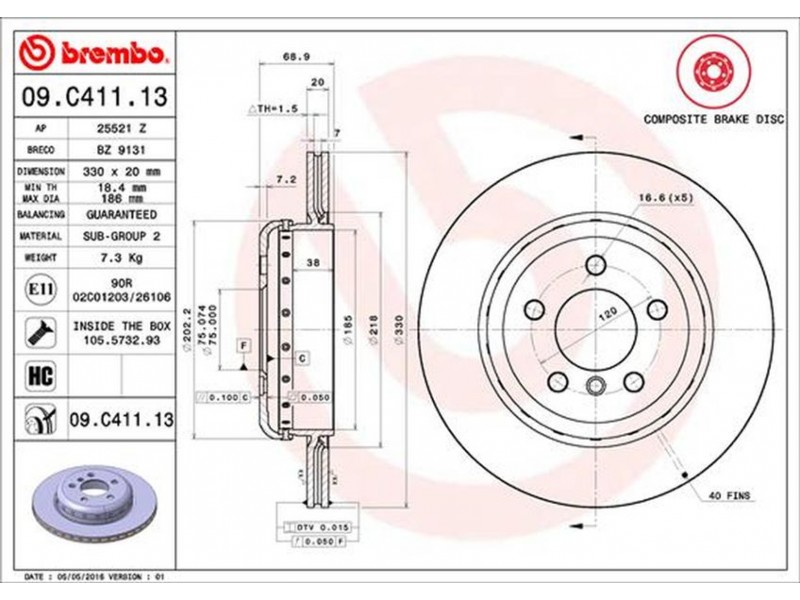 09.C411.13 ΔΙΣΚΟΙ ΟΠΙΣΘ..BMW 5(F10/F11) 10-16 (330MM) BREMBO 09.C411.13 - Δισκόπλακα