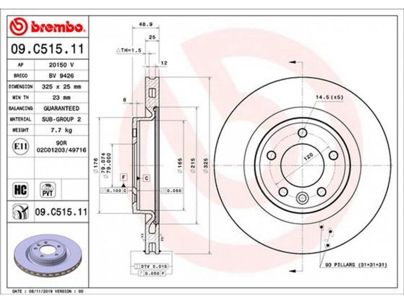 09.C515.11 ΔΙΣΚΟΙ ΟΠΙΣΘ. DISCOVERY V / RANGE ROVER IV 12- / RANGE ROVER SPORT (L494) 13-(325ΜΜ) BREMBO 09.C515.11 - Δισκόπλακα