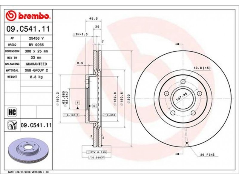 09.C541.11 ΔΙΣΚΟΙ ΕΜΠΡ.FORD KUGA II 12-> / TRANSIT CONNECT 13- (300ΜΜ) BREMBO 09.C541.11 - Δισκόπλακα
