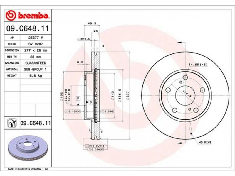 09.C648.11 ΔΙΣΚ.ΕΜΠΡ.AURIS(E18) 12-18(277MM) BREMBO 09.C648.11 - Δισκόπλακα