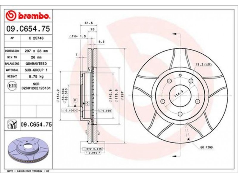 09.C654.75 ΔΙΣΚΟΙ ΕΜΠΡ. MAZDA 6 13-16 / CX-5 11-17(297mm) BREMBO 09.C654.75 - Δισκόπλακα