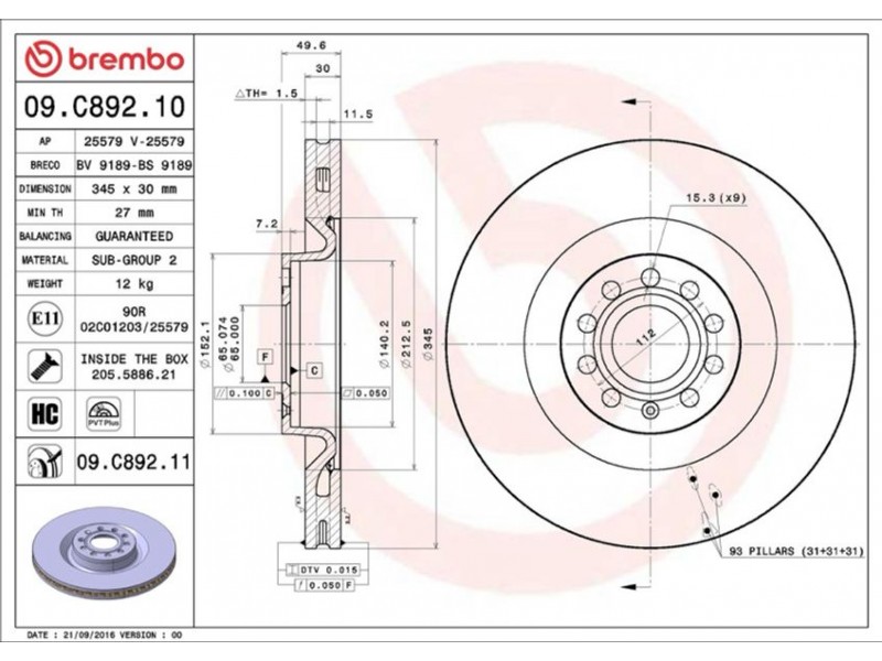 Brembo Δισκόπλακα - 09.C892.11