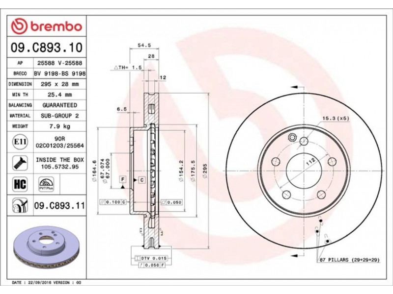 09.C893.11 ΔΙΣΚ/ΚΕΣ EM. MERC W211 BREMBO 09.C893.11 - Δισκόπλακα