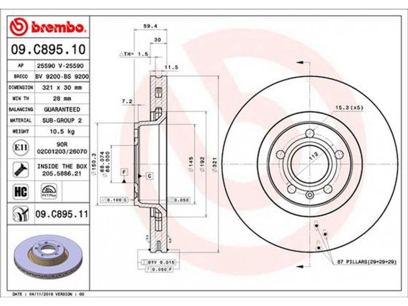 09.C895.11 ΔΙΣΚ/ΚΕΣ ΕΜ.AUDI A6 3.2 04- BREMBO 09.C895.11 - Δισκόπλακα