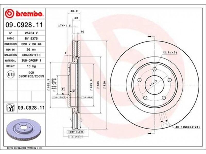 Criteries : Αριθμός οπών 5, Διάμετρος κέντρωσης [mm] 68, Ελάχιστο πάχος [mm] 26, Εξωτερική διάμετρος [mm] 320, Επιφάνεια με επίστρωση, Πάχος δισκόπλακας [mm] 28, Τύπος δισκόφρενων εσωτερικά αεριζόμενο, Υψος [mm] 44