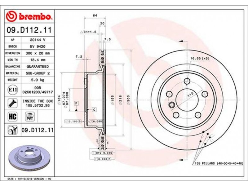 09.D112.11 ΔΙΣΚΟΙ ΟΠΙΣΘ. BMW 3 (G20) 11/18-(300MM) BREMBO 09.D112.11 - Δισκόπλακα