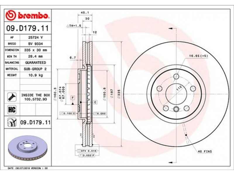 Criteries : Αριθμός οπών 5, Διάμετρος κέντρωσης [mm] 67, Ελάχιστο πάχος [mm] 28,4, Εξωτερική διάμετρος [mm] 335, Επεξεργασία υψηλής ανθράκωσης, Επιφάνεια με επίστρωση, Πάχος δισκόπλακας [mm] 30, Συμπληρωματικό προϊόν/ πληροφορίες 2 Με βίδες, Τύπος δισκόφρενων εσωτερικά αεριζόμενο, Υψος [mm] 45