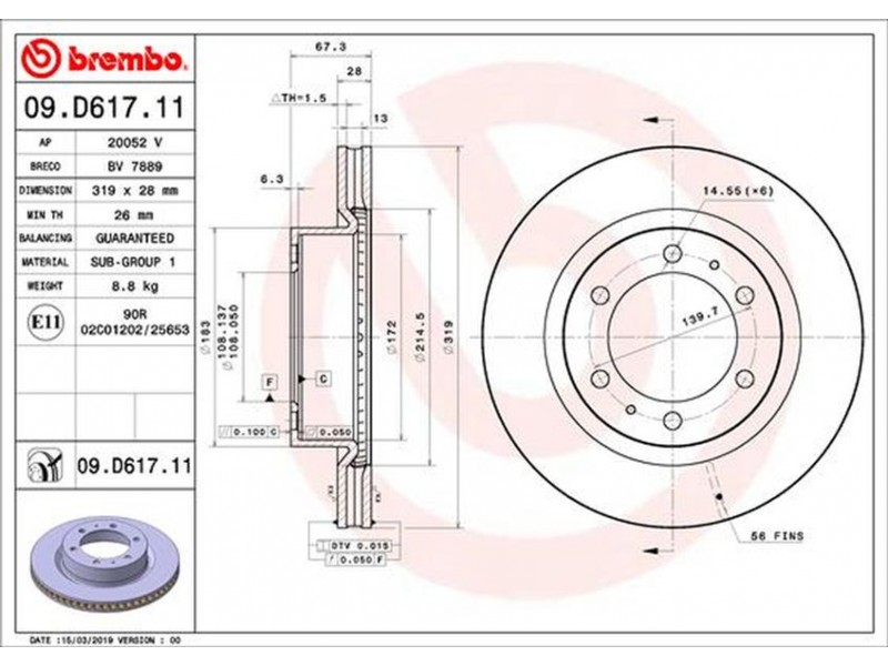 Criteries : Αριθμός οπών 6, Διάμετρος κέντρωσης [mm] 108, Ελάχιστο πάχος [mm] 26, Εξωτερική διάμετρος [mm] 319, Επιφάνεια με επίστρωση, Πάχος δισκόπλακας [mm] 28, Τύπος δισκόφρενων εσωτερικά αεριζόμενο, Υψος [mm] 67