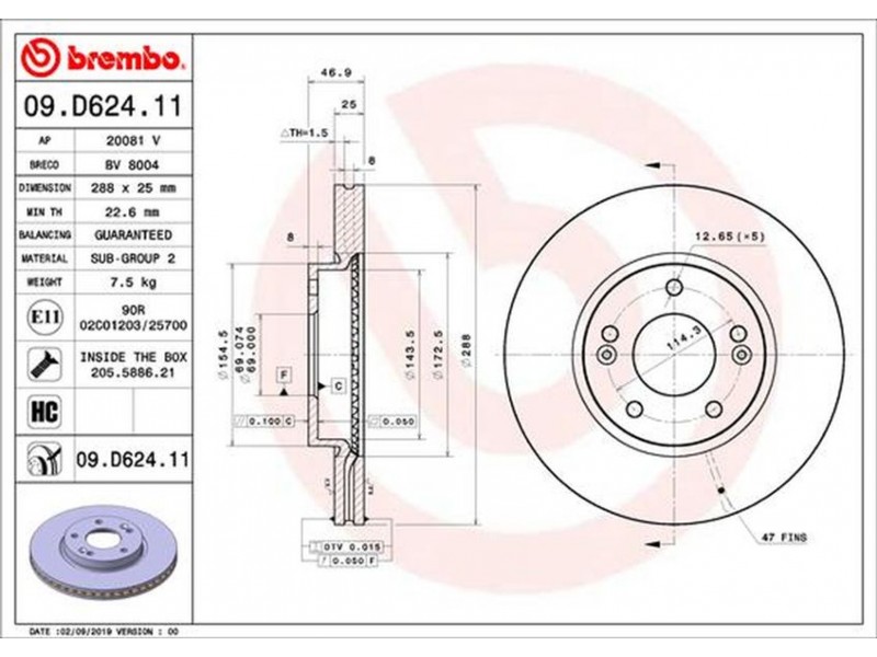 09.D624.11 ΔΙΣΚΟΙ ΕΜΠΡ. HYUNDAI i30 11/16- / KIA CEED 18-(288ΜΜ) BREMBO 09.D624.11 - Δισκόπλακα