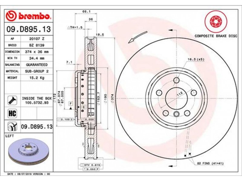 09.D895.13 ΔΙΣΚΟΙ ΕΜΠΡ.ΑΡ.BMW 3 (G20) 18- / 5 (G30, F90) 16- / X5 (G05, F95) 18-(374MM) BREMBO 09.D895.13 - Δισκόπλακα