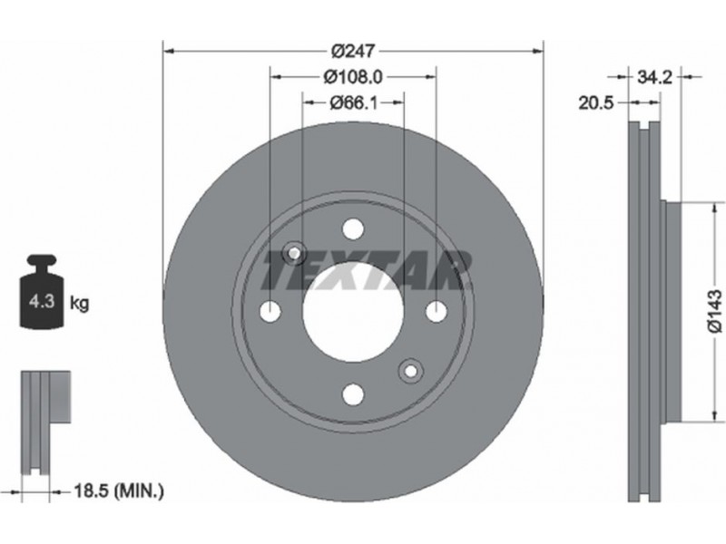 TEXTAR (Z 2034) ΔΙΣΚΟΠΛΑΚΕΣ PEUGEOT TEXTAR 92043103 - Δισκόπλακα