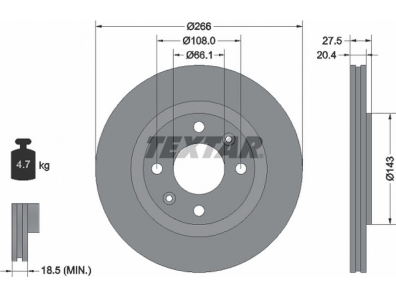 Criteries : Βάρος [kg] 4,7, Διάμετρος κέντρωσης [mm] 66,1, Διάμετρος κύκλου οπής [mm] 108, Διάμετρος οπής μπουλονιού τροχού [mm] 13, Ελάχιστο πάχος [mm] 18,5, Εξωτερική διάμετρος [mm] 266, Επιφάνεια με επίστρωση, Εσωτερική διάμετρος [mm] 133,8, μήκος συσκευασίας [cm] 27,8, Πατρόν τρύπας/αριθμός τρυπών 04/06, Πάχος δισκόπλακας [mm] 20,4, πλάτος συσκευασίας [cm] 27,8, Συμπληρωματικό προϊόν/ πληροφορίες 2 χωρίς μπουλόνια στερέωσης τροχού, Συμπληρωματικό προϊόν/ πληροφορίες 2 χωρίς πλήμνη, Συμπληρωματικό προϊόν/ πληροφορίες 2 χωρίς ρουλεμάν τροχού, Τύπος δισκόφρενων εξωτερικά αεριζόμενο, Υψος [mm] 27,5, ύψος συσκευασίας [cm] 8,4
